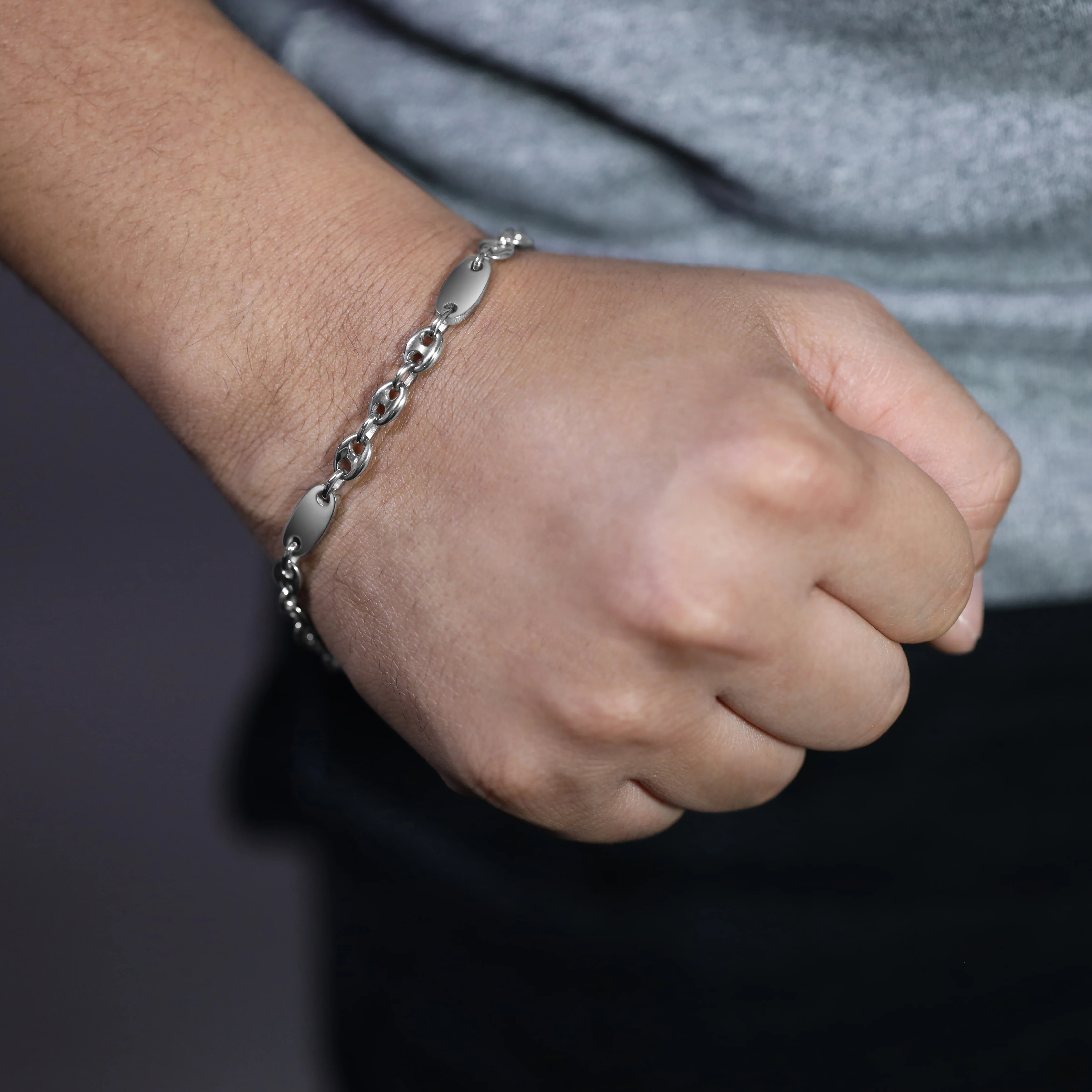 Plattenkette + Bohnenkette Armband 6mm breit aus Edelstahl