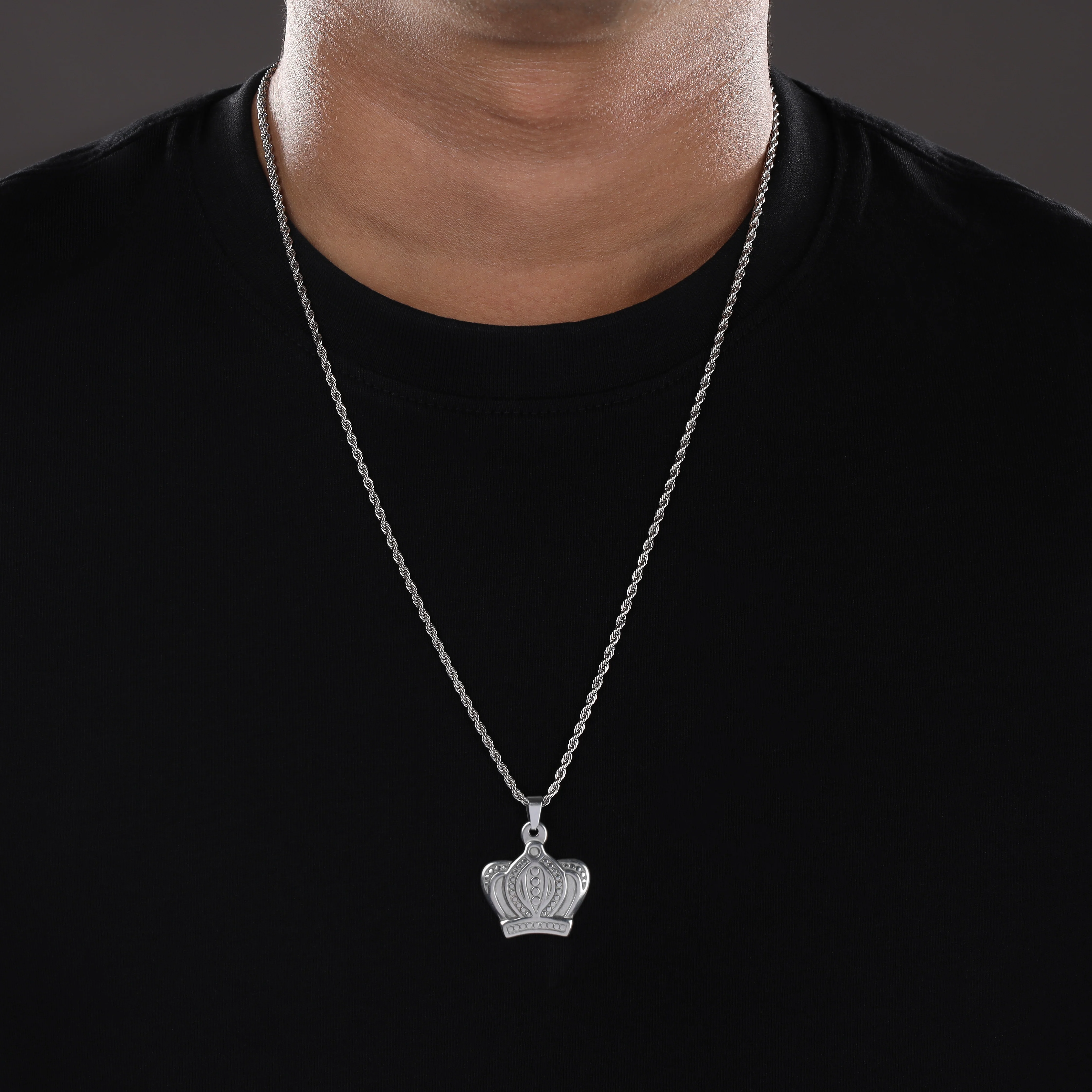 Set Kordelkette Rope Chain mit Krone Anhänger aus Edelstahl